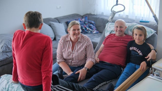 Der Familienvater muss sich sechs Chemotherapien und Bestrahlungen unterziehen, erste Prognosen sind deprimierend: „Man hat gesagt, dass er ein Pflegefall wird. Doch das haben wir nie akzeptiert“, so das Paar. Der 43-Jährige kämpft – insgesamt 160 Tage muss er im Spital bleiben. Gehen wird er nicht mehr können, doch er schaffte es in den Rollstuhl. Immer wieder pendelt seine Frau ins 60 Kilometer entfernte Linzer Spital, Fahrtzeit je Strecke über eine Stunde.