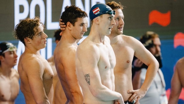 Denkbar knapp hat Österreichs Lagen-Staffel (4 x 50 m) am Sonntag bei der Kurzbahn-Schwimm-EM in Lublin (Polen) Edelmetall verpasst.