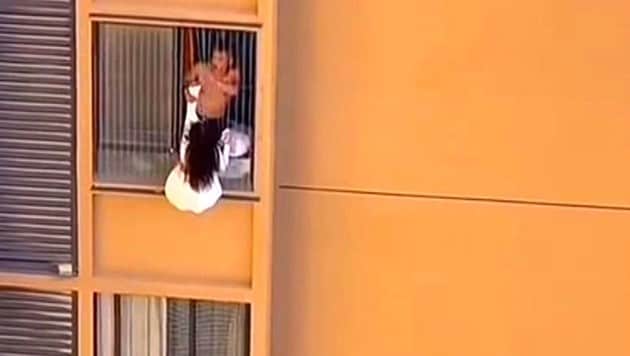Geliebte kletterte im 10. Stock aus dem Fenster
