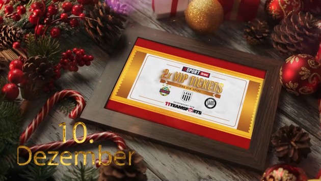 Tag zehn des „sportkrone.at“-Adventkalenders! Heute gibt es wieder einen tollen Preis zu gewinnen: Hinter dem zehnten Türchen verstecken sich zwei VIP-Tickets für ein Spiel von SK Rapid, LASK oder Sturm Graz, gesponsert von „11teamsports“! Wie Sie gewinnen können – ganz einfach: Folgen Sie uns auf Instagram, Liken Sie den Beitrag und Markieren Sie drei Personen, denen Sie diesen Gewinn ebenso gönnen. Wir wünschen viel Glück. Die Gewinner werden per Zufallsgenerator gezogen.