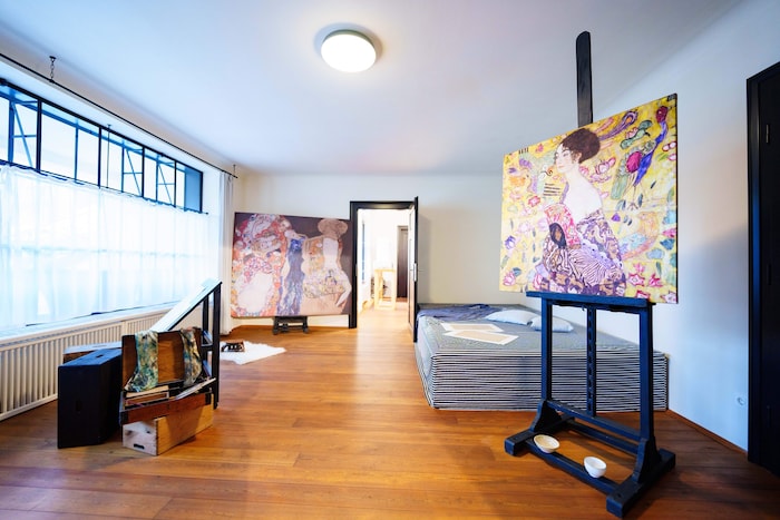 Im 13. Wiener Bezirk befindet sich versteckt zwischen Wohnhäusern ein Juwel: das letzte Atelier des Künstlers, in dem einige der weltbekannten Bilder entstanden. Klimt nützte ein Gartenhaus, das auf einem großen Grund in Hietzing stand, zwischen 1911 bis zu seinem Tod 1918. Das Gartenhaus gibt es noch, es ist jetzt ein Haus im Haus, nämlich in der Villa, die Klimt nicht mehr erlebte. Nach seinem Tod begannen die Eigentümer des Gartenhauses dieses zu erweitern, schließlich entstand rundum eine neobarocke Villa, die heute der Republik gehört und eine wechselvolle Geschichte hinter sich hat.