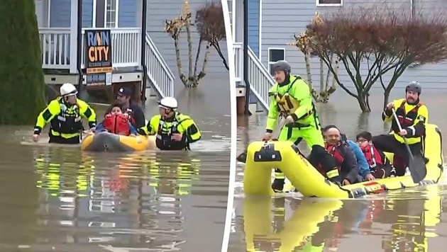 Im US-Bundesstaat Washington traten Dutzende Flüsse über ihre Ufer, viele Straßen und Felder waren überschwemmt. In einigen Ortschaften reichte das Wasser bis an die Hausdächer, berichtete CNN am Freitag. Gouverneur Bob Ferguson rief Bewohner dazu auf, Anweisungen der Behörden zu folgen und gefährdete Gebiete zu verlassen.