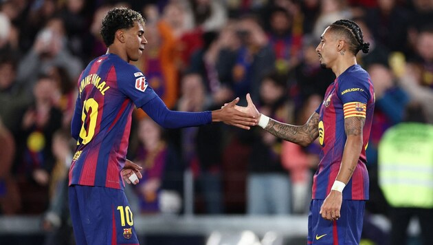 Spitzenreiter FC Barcelona hat in der spanischen Fußball-Meisterschaft seinen Vorsprung auf den ersten Verfolger Real Madrid zumindest vorübergehend auf sieben Punkte ausgebaut. Die Katalanen feierten am Samstag durch einen Doppelpack von Raphinha (70., 86.) einen 2:0-Heimsieg über Osasuna.