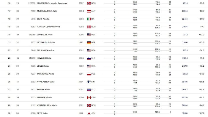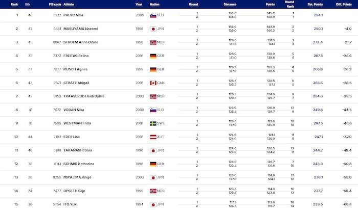 Eder landete bei zwei gleichmäßigen Sprüngen zweimal bei 124 Metern. Prevc (135 und 138 Meter) und Maruyama (134 und 135 Meter) blieben für die Konkurrentinnen außer Reichweite. „Vom Tisch ist es ganz okay. Draußen im Flug tue ich mir brutal schwer, dass ich Zug mache und das Fluggefühl habe. Da heißt es dranbleiben“, sagte Eder.