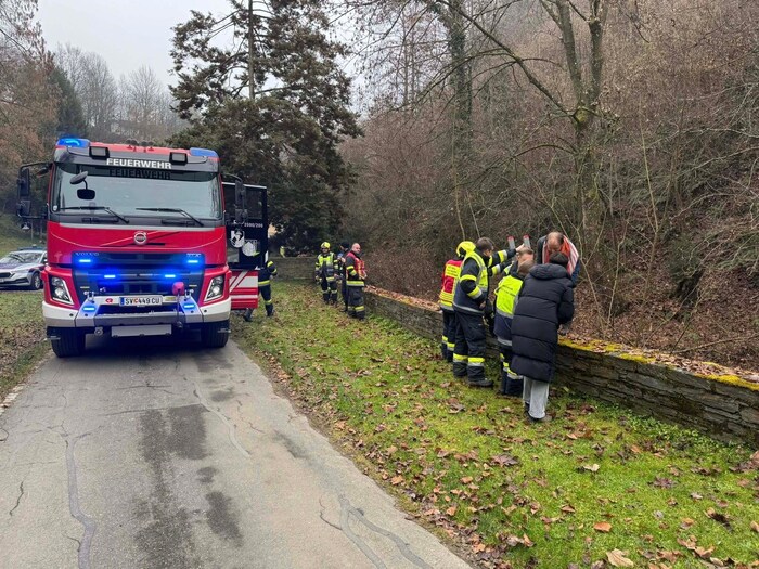 „Ein Feuerwehrmann nahm den Hund schließlich auf die Schultern und trug ihn behutsam den Weg hinauf. Oben angekommen, sprang der Vierbeiner voller Freude seiner sichtlich erleichterten Besitzerin entgegen“, schildert die FF St. Veit.