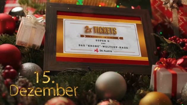 Tag 15 des „sportkrone.at“-Adventkalenders! Heute verlosen wir wieder ein ganz besonderes Package: Hinter dem 15. Türchen verstecken sich zwei Tickets für den Super-G in Kitzbühel am 23.01.2026 inklusive Eintritt ins „Krone“-Weltcup-Haus und ein signiertes Startnummernleibchen von Katharina Liensberger getragen im Riesenslalom von Copper Mountain! Wie Sie gewinnen könnenn – ganz einfach: Folge Sie uns auf Instagram, Liken Sie den Beitrag und Markieren Sie drei Personen, denen Sie diesen Gewinn ebenso gönnen. Wir wünschen ihnen viel Glück. Die Gewinner werden per Zufallsgenerator gezogen.