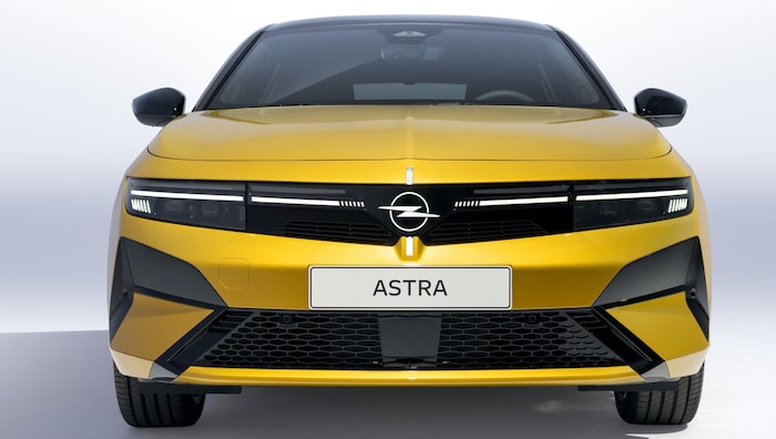 Äußerlich modifizierten die Designer vor allem die Frontpartie. Optisch rückt der Astra damit näher an die jüngsten Studien und SUV-Modelle der Stellantis-Marke. Das opeltypische Gesicht, der „Vizor“, ist nun schmaler gezeichnet und das Logo erstmals in dieser Baureihe im Betrieb durchgängig beleuchtetet. Das zentrale Blitz-Emblem ist zudem Ausgangspunkt des Compass-Designs, das als gestalterisches Leitmotiv dient. Die vertikale Achse dieses Fadenkreuzes setzt sich optisch nach oben fort und geht in eine markante „Bügelfalte“ auf der Motorhaube über. Dieses Detail zitiert den Kadett A der 1960er-Jahre.