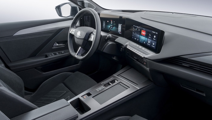 Im Innenraum legten die Entwickler einen Schwerpunkt auf das Bediensystem und die Materialauswahl. Das Cockpit und die Benutzeroberflächen des Multimedia-Infotainments präsentieren sich klarer und übersichtlicher als beim bisherigen Astra. Die nötige Rechenarbeit übernimmt die Cockpit-Plattform des etablierten Zulieferers Snapdragon. Eine überarbeitete Menüführung und neugestaltete Oberflächen sollen die Bedienung intuitiver gestalten und die Ablenkung während der Fahrt reduzieren.