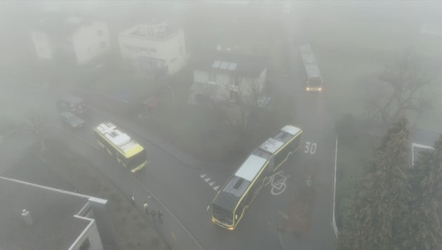 Der Unfall ereignete sich gegen 8.30 Uhr an der Kreuzung der Wälderstraße (L16) mit der Schmerzbildstraße. Bei dichtem Nebel holte der Fahrer beim Einbiegen in die Wälderstraße etwas zu weit aus – mit dem Ergebnis, dass der Linienbus einen Gartenzaun streifte und sich in diesem regelrecht verkeilte.