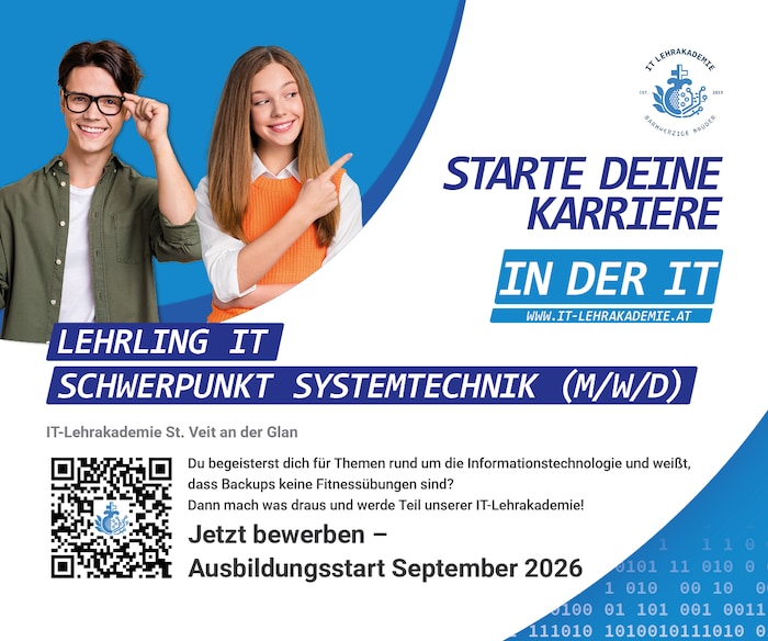 Die nächste Ausbildung an der IT-Lehrakademie startet im Herbst 2026. IT-begeisterte Jugendliche können sich ab sofort bewerben. Weitere Infos unter www.it-lehrakademie.at oder unter 0316/90 606-1701.