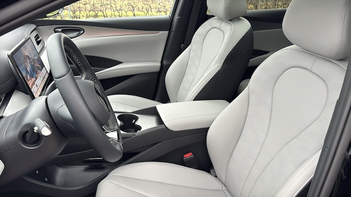 Viel besser funktioniert das Zusammenspiel zwischen dem 1,5-Liter-Vierzylinder mit 98 PS und dem 197 PS starken Elektromotor, der die Hauptarbeit verrichtet. Die Systemleistung liegt bei 212 PS, also nur ganz knapp über der des E-Motors. In den allermeisten Fahrzuständen werden die Vorderräder über das CVT-Getriebe rein elektrisch angetrieben, der Seal 6 spricht praktisch generell so direkt an wie ein E-Auto. Der Verbrenner ist dennoch meistens zu hören, oft sogar deutlich, obwohl er nur bei höherem Kraftbedarf – etwa bergauf – zu den Rädern durchgeschaltet wird. So weit, so reibungslos.