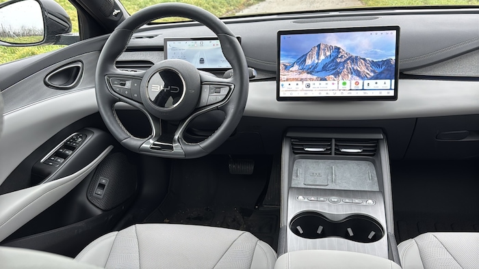 Immerhin fährt sich das Auto einigermaßen spritzig. 8,5 Sekunden dauert der Standardsprint, was sich wegen dem spontanen Antritt noch zackiger anfühlt. Auf jeden Fall reicht es, die Winterreifen der chinesischen Marke Sailun auf Nässe permanent zu überfordern. Maximal läuft der BYD 180 km/h.