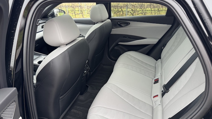 Darunter gibt es noch die Ausstattung „Boost“ ab 35.890 Euro. Hier muss man vor allem auf die Hälfte der Akkukapazität sowie auf 28 PS der Systemleistung verzichten, und nebenbei auch noch auf Details wie 18-Zoll-Felgen, Panorama-Glasschiebedach, drahtloses Handy-Laden (50 W), Parksensoren vorne, 360-Grad-Kamera oder auch beheizte und belüftete Vordersitze sowie Lenkradheizung. Und das Soundsystem ist auch schwächer. Sechs Jahre Garantie sind hier Standard.