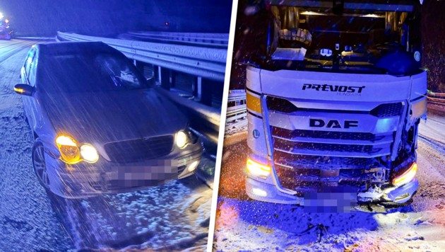 Der Hauptniederschlag spielte sich ab Mittag mit bis zu vier Zentimetern pro Stunde ab – „das ist sehr, sehr viel“, sagt Bratschko zur Einordnung. Doch schon davor krachte es: Ein Pkw-Lenker war gegen 5 Uhr früh Richtung Wien mit nicht angemessener Geschwindigkeit unterwegs und geriet zwischen Kalcherkogel- und Mitterbergtunnel ins Schleudern. Das Auto wurde schwer beschädigt. Auf der Kärntner Seite knickte in den Morgenstunden ein Lkw-Gespann ein und blockierte eine Fahrspur.