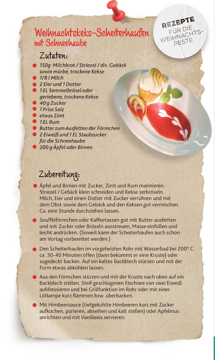 Vor den Weihnachtsfeiertagen werden die Kühlschränke immer gut gefüllt. Viele genießbare Lebensmittel wandern aber leider bald danach in die Mülltonne. Gemeinsam mit Koch-Legende Willi Haider hat sich die „Steirerkrone“ auf die Suche nach schmackhaften Rezepten zur Resteverwertung gemacht.