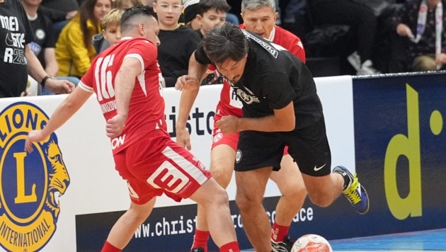 Die rote Goalie-Legende fieberte dann wie alle in der Halle beim gefühlten sportlichen Höhepunkt, dem Grazer Derby in der Vorrunde, mit. Das Jahr für Jahr immer umkämpfter wird. „Sicher geht‘s vor allen Dingen um die gute Sache“, so Mario Haas, „aber die meisten am Parkett sind auch Ex-Profis. Da will jeder gewinnen!“ Im ersten Duell Rot gegen Schwarz ging‘s zumindest am Parkett „brüderlich fair“ aus: 3:3 hieß es am Ende. 20 Sekunden vor der Sirene traf GAK-Legende Lienhart zum Ausgleich.