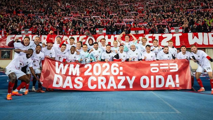 Plakat der österreichischen Fußball-Nationalmannschaft nach der geschafften WM-Quali.