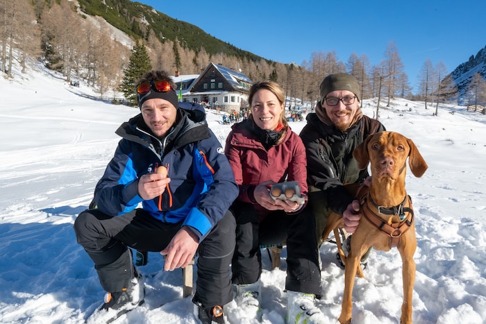„Es ist gelebter Usus, dass die Grundzutaten wie Eier, Speck und auch Brot für die eigene Portion Proteinklassiker mittransportiert werden“, sagt der Hüttenwirt, der es in diesem Winter noch einmal wissen möchte und auf der Klagenfurter Hütte den Kochlöffel schwingt.