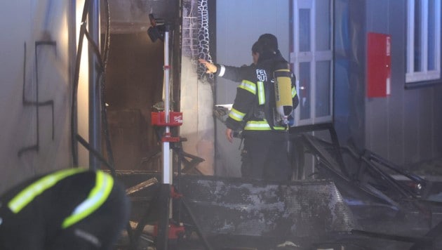 Den Einsatzkräften sofort ins Auge gestochen ist auch ein direkt am Brandort im Fassadenbereich aufgesprühtes Hakenkreuz. Die Polizei hat die Ermittlungen aufgenommen, der Tatort wurde polizeilich gesperrt.