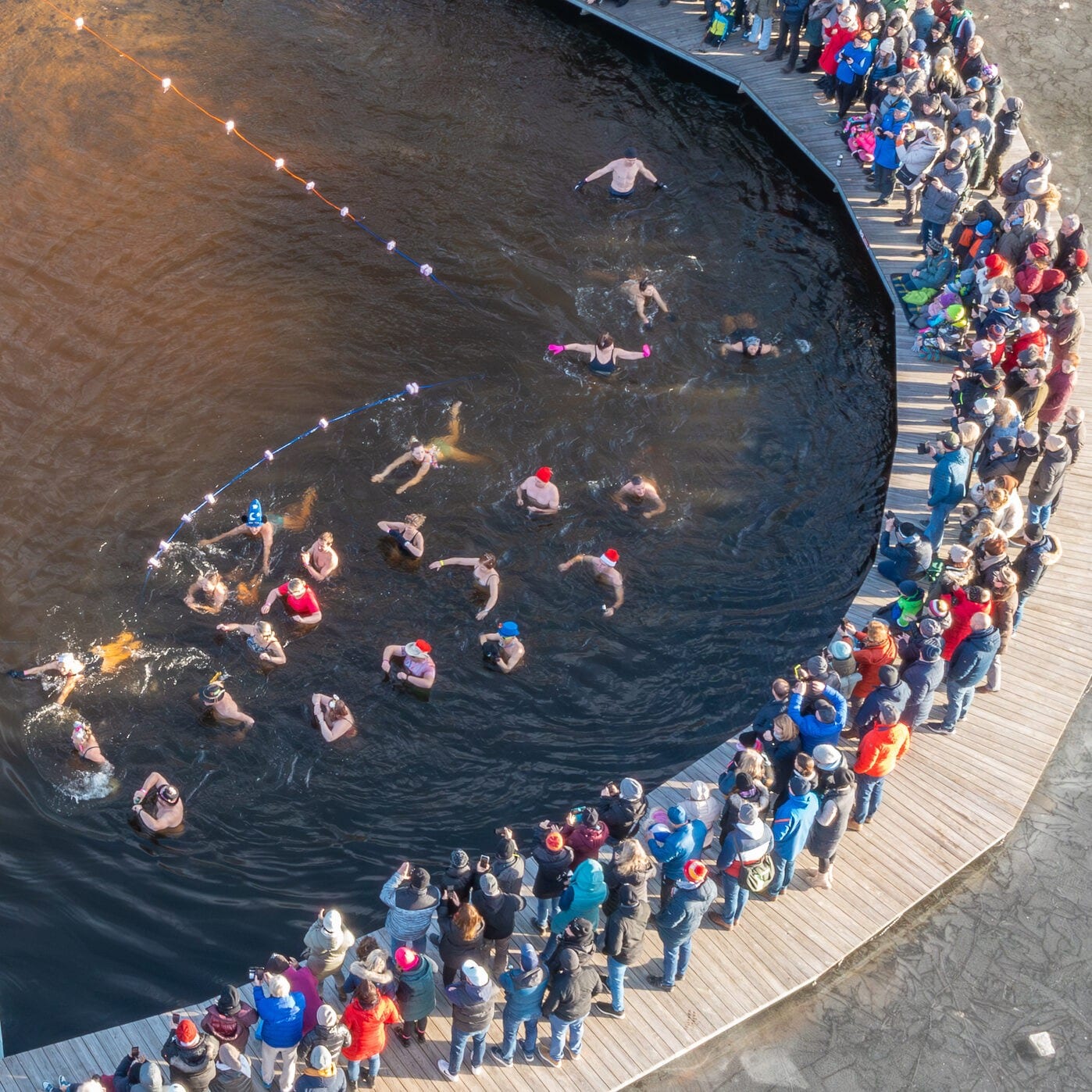 „Diese Tradition gibt es in skandinavischen Ländern oder in Norddeutschland schon lange. 2020 wollte ich das auch am Herrenteich ausprobieren“, erzählt Initiator und Organisator Paul Wagesreither von den Anfängen der traditionellen Veranstaltung mit rund 70 wackeren Eisschwimmern und Hunderten von Zuschauern. Wagesreither ist mittlerweile im Ruhestand, arbeitete bei der Direktion Staatsschutz und Nachrichtendienst (DSN) und leitete die Außenstelle am Flughafen Schwechat. Mit vielen Unterstützern organisiert er das Schwimmen als Privatperson.