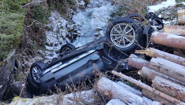 Der Pkw stürzte über steiles Gelände fast hundert Meter in die Tiefe. „Das Fahrzeug blieb in einem Bachbett auf dem Dach liegen“, schildert die Polizei den Unfallhergang. Eine Zeugin sah den schrecklichen Absturz und schlug sofort Alarm. Während die Rettungskräfte anrückten, konnten sich die Autoinsassen selbst aus dem Wrack befreien.