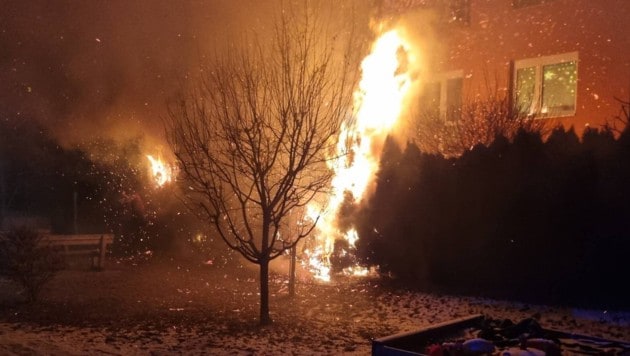 Schon kurz vor dem Jahreswechsel, um 23.40 Uhr, bemerkte in Schladming eine Polizeistreife, dass im Ortszentrum eine Rauchsäule aufstieg. Tatsächlich war eine Hecke in Brand geraten. Die Freiwillige Feuerwehr Schladming rückte mit fünf Fahrzeugen und 24 Einsatzkräften aus.
