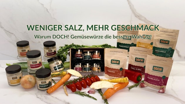 Gesund kochen und trotzdem voller Geschmack? Das geht DOCH! Ein Ehepaar aus Niederösterreich zeigt, wie Würzen ganz ohne künstliche Zusatzstoffe gelingt. Die „Krone“ verlost 1 von 7 DOCH!-Gewürzsets. Jetzt mitmachen und gewinnen!