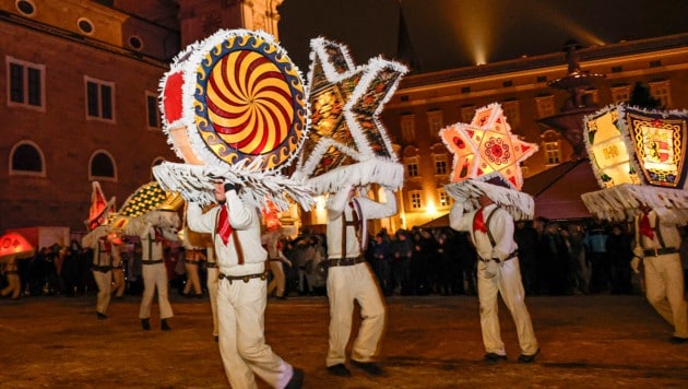 Und in der Landeshauptstadt erhellten Lichtgestalten die Nacht: 29 Glöckler sowie ein Vor- und ein Nachläufer schulterten ihre beleuchteten und mit Seidenpapier verzierten Kappen. Darunter sind Symbole wie Sterne, die Sonne oder Rauten. „Großartig, dass wir wieder einmal durch den Schnee laufen können“, freut sich Christian Irl, neu gewählter Obmann von Jung Alpenland und selbst Träger des Schlusssterns.