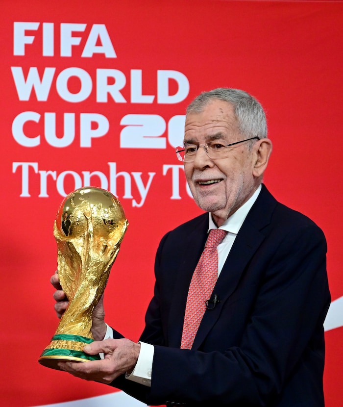 Der FIFA-WM-Pokal ist in Österreich! Bundespräsident Alexander Van der Bellen enthüllte gemeinsam mit Ex-Weltfußballer Fabio Cannavaro am Mittwochnachmittag die goldene Trophäe, um die auch das ÖFB-Team im Sommer kämpfen wird.