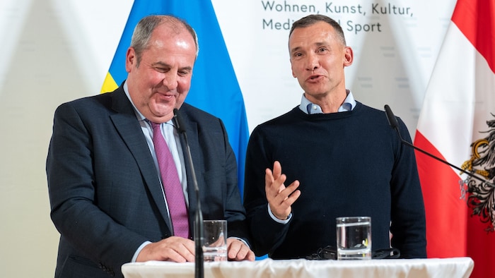 Genaue Details dazu seien noch in Ausarbeitung, so Pröll. Sobald konkrete Projekte fixiert sind, werde man damit an die Öffentlichkeit gehen, erklärte der Niederösterreicher. Der einstige Weltklassestürmer Schewtschenko („Ich bedanke mich bei allen Österreichern dafür, dass sie mein Land unterstützen“) hob die Bedeutung des Fußballs für sein kriegsgebeuteltes Land hervor. „Er bringt Hoffnung und ist auch eine Therapie für unsere jungen Leute, um schlechte Erfahrungen hinter sich zu lassen.“