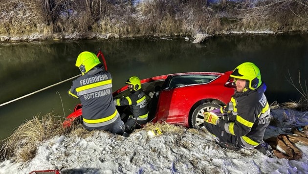 Dramatischer Einsatz für die Rettungskräfte in Rottenmann in der Steiermark: Nach einem Unfall drohte ein Pkw in den Bach zu stürzen. Das Auto füllte sich bereits mit Wasser, der Lenker lag regungslos im Fahrzeug. Die Feuerwehr konnte ihn befreien.