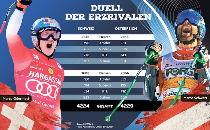 Fünf Pünktli, wie es die Schweizer ausdrücken, trennen die großen Ski-Erzrivalen im Nationencup. Die zuletzt von den Eidgenossen genüsslich belächelten Österreicher sind plötzlich wieder ein ernst zu nehmender Gegner geworden! Spannung pur also vor dem großen Klassiker-Jänner.