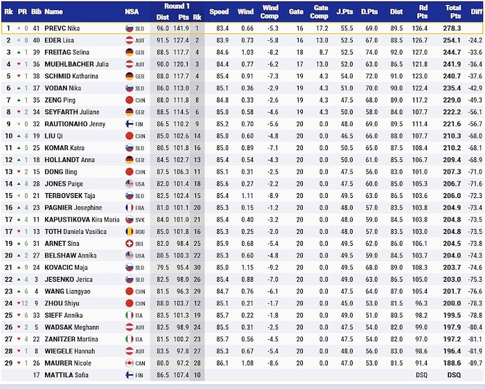 „Der erste Sprung war nicht ganz so cool, dafür bin ich noch recht weit gekommen. Der zweite war nicht ganz getroffen, ein bisschen zu früh auf der Kante, aber bei einem zweiten Platz darf man sich nicht aufregen“, sagte Eder. Zur aktuellen Stockerlserie meinte sie trocken: „Schon gut, aber ich möchte, dass meine Sprünge gut sind.“ Als Belohnung für den Hattrick auf Platz zwei rückte Eder in der Gesamtwertung auf Platz drei vor. Allerdings fehlen in Ljubno die Japanerinnen und ein Großteil der Norwegerinnen.
