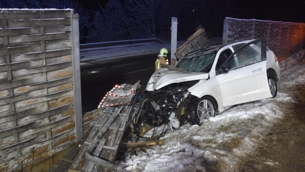 Zum Unfallzeitpunkt herrschten winterliche Bedingungen. „Der Wagen schlitterte folglich auf einer Länge von 80 bis 100 Metern über das Bankett, wobei ein Baum und ein Verkehrsspiegel beschädigt bzw. ausgerissen wurden“, so die Ermittler weiter. Letztlich krachte das Fahrzeug mit voller Wucht gegen eine Lärmschutzwand.