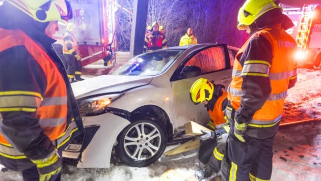 Es erfolgte die Sicherung des am Sockel schwer beschädigten Mastes. In weiterer Folge konnte das Auto zurück auf die Fahrbahn gezogen werden. Im Anschluss wurden zwei Steher angebracht und der Mast auf diese Weise gesichert.