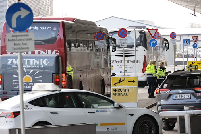 Vor dem Flughafen stauten sich am Dienstagvormittag die Busse, weil einige Fluggäste die Weiterreise nach Wien auf der Straße antreten. Andere brauchen wiederum Geduld und müssen in Graz verpflegt werden, weil die Airlines auf eine baldige Aufhebung der Sperre in Wien hoffen, um dann weiter nach Schwechat zu fliegen.