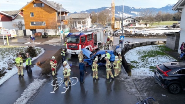 Zu einem schweren Unfall kam es am Dienstag in Lustenau: Zwei Autos krachten ineinander, eine der beiden Lenkerinnen konnte das Wrack nach dem Crash nicht mehr selbstständig verlassen.