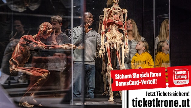 Die gefeierte Ausstellung „KÖRPERWELTEN – Am Puls der Zeit“ ist aktuell in der Wiener Stadthalle zu sehen. Die Schau nimmt die Besucher auf eine einzigartige Entdeckungsreise durch den menschlichen Körper mit und richtet den Blick auf die Herausforderungen des 21. Jahrhunderts. Sichern Sie sich Ihre Tickets unter ticket.krone.at!