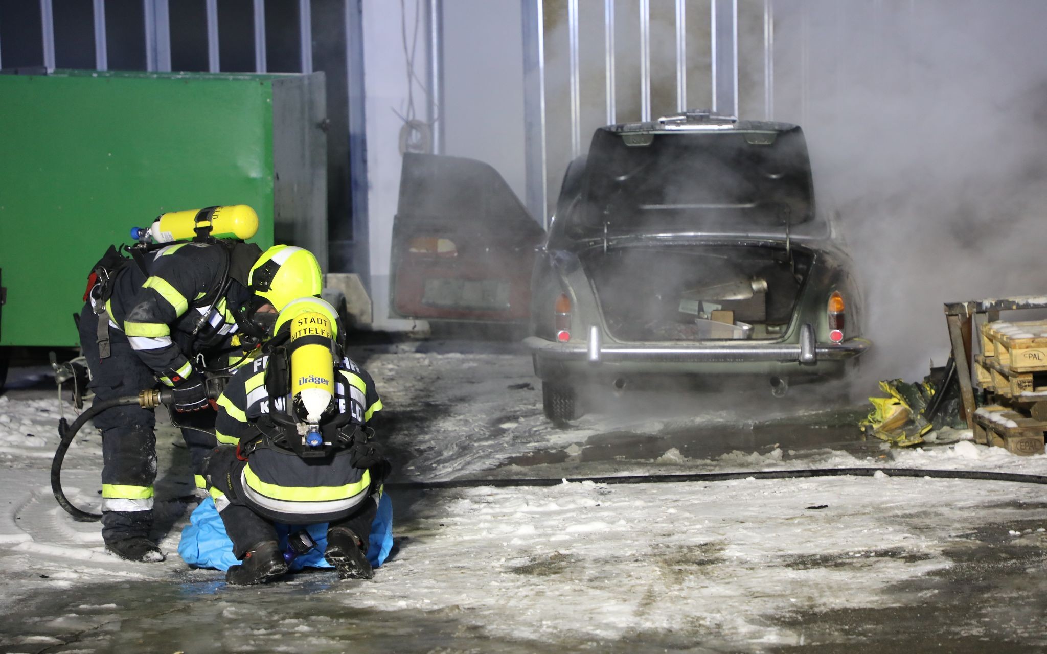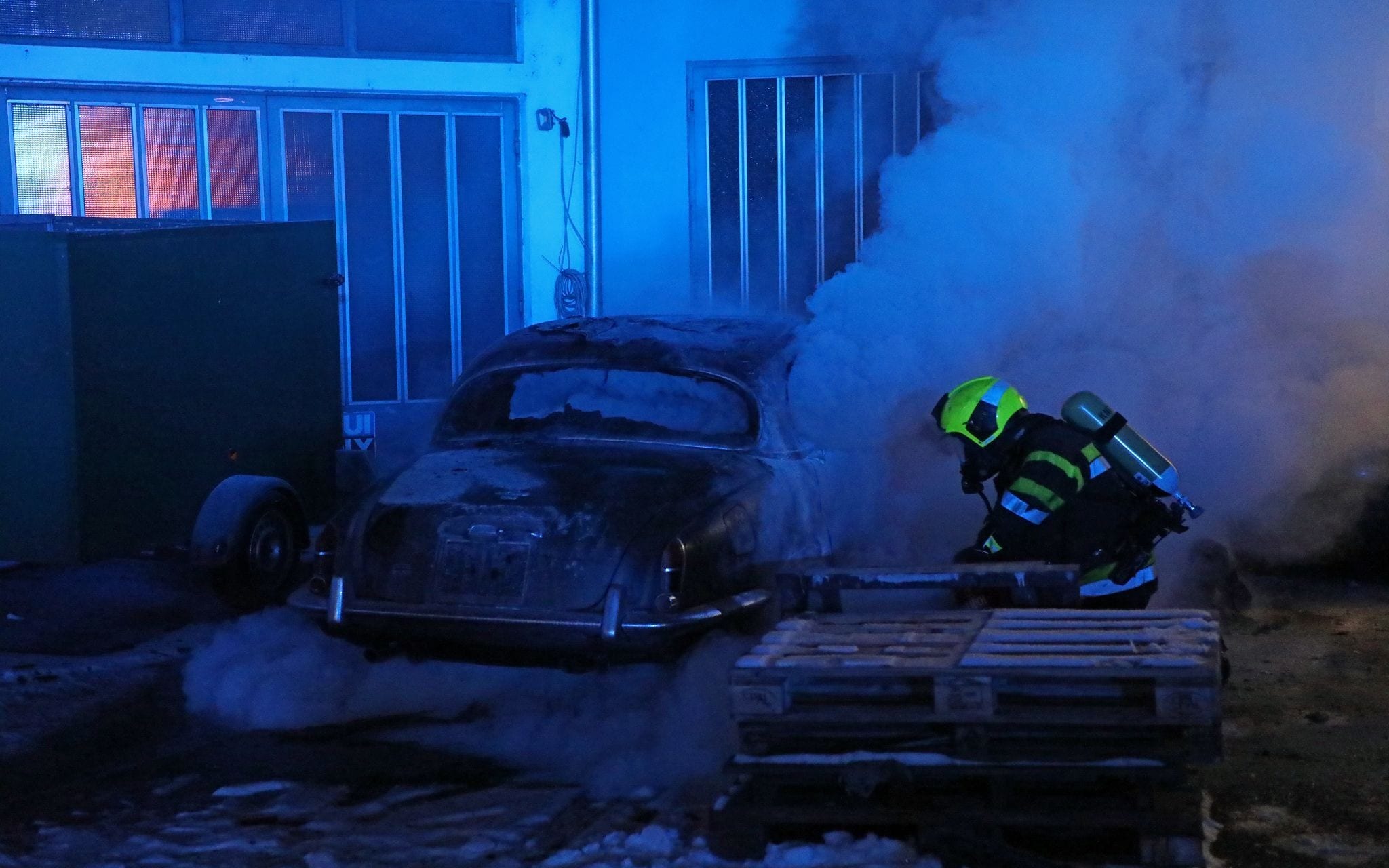 Brandeinsatz in der Nacht auf Donnerstag in der Steiermark: Ein abgestellter Oldtimer fing aus unbekannten Gründen Feuer, 42 Kräfte waren zur Stelle.