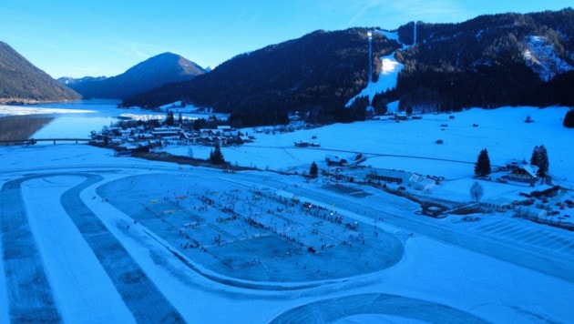 Teichhockey vom Feinsten wird seit Freitag auf der natürlichen Eisfläche am Weißensee gespielt. 17 Spielfelder sind für 96 Teams gerichtet. Organisatoren sind Christian Kresse und Gerhard Brüggler. Die Spielfeld-Größe beträgt 16 mal 28 Meter, die Tore und Banden sind klein, gespielt wird drei gegen drei. 1000 Spieler küren in 600 Partien den Sieger. „Wir haben sogar Flutlicht und Teilnehmer aus acht Nationen“, freut sich Kresse. Auch aus Kanada sind Cracks dabei.