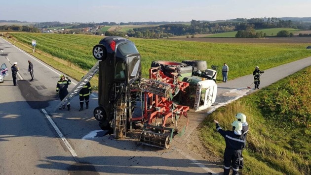 „Wir rechneten damit, einen Toten bergen zu müssen“, erinnert Kommandant Michael Hartner an das tragische Szenario. Wie durch ein Wunder wurde der Autolenker aber nur leicht verletzt, der Traktorlenker blieb sogar unverletzt.