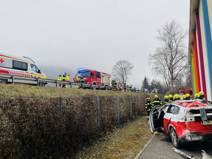 Der 32-jährige Beifahrer wurde im Fahrzeug eingeklemmt und musste mit hydraulischem Rettungsgerät befreit werden. Der Fahrer (56) erlitt ebenfalls Verletzungen, konnte das Fahrzeug jedoch selbstständig verlassen.
