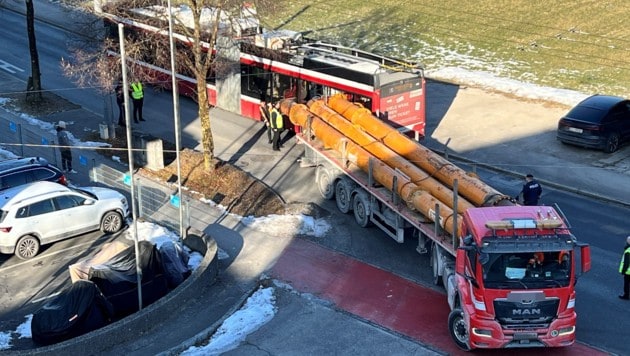 Bange Momente Dienstagvormittag in Salzburg-Maxglan: Ein Lkw prallte beim Abbiegen gegen einen Obus, der zum Glück unbesetzt war. Während der Aufräumarbeiten bildete sich rasch ein Stau in beide Richtungen.