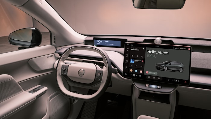 Im Innenraum folgt der EX60 konsequent dem Prinzip des „Software Defined Vehicle“. Ein ungewohnt konvex gebogener, breiter 15-Zoll-OLED-Touchscreen dominiert die Mittelkonsole, ergänzt von einem volldigitalen 11,4-Zoll-Fahrerdisplay. Premiere feiert eine dialogorientierte KI auf Basis von Google Gemini, die über natürliche Sprache Navigation, Klima oder Fahrzeugfunktionen bedient und dank OTA-Updates ständig erweitert werden kann.