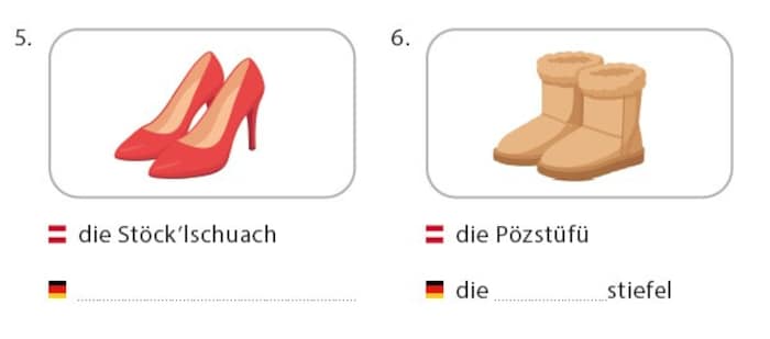 So trägt etwa Kapitel 6 die Überschrift „A Fetz’n is kaa Wöötuntergong“, was unmittelbar mit „Eine schlechte Note ist kein Weltuntergang“ übersetzt wird. Weiter geht es mit Small Talk, Wetterkunde, Zahlentabelle, Dialektquiz oder einer Übersetzungsübung eines Songs der Poxrucker Sisters.