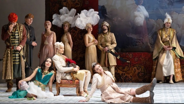 Regisseur Christof Loy hat die südliche Variante der Operette als flotten wie amüsanten Musiktheaterabend inszeniert. Hier fehlt es nicht an (derber) Komik und szenischem Schwung, die Figuren sind mehr als deutlich gezeichnet. Verzopfte Klischees und die leichte Muse lassen grüßen. So beklagen die Haremsdamen bitterlich, dass der Sultan sie nicht beglückt, scherzen Männer, wie oft sie ihren „Degen“ benutzen, und weint die schöne Sklavin darüber, nicht verkauft worden zu sein. Dazu gibt es etliche Missverständnisse und Slapstick. Über die (wenigen) Längen hilft die Ausstattung mit edlem Orient-Flair.