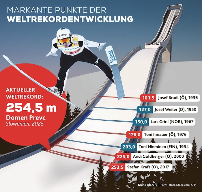 Sloweniens Regierung hat bereits drei Millionen Euro für den Umbau des legendären Letalnica-Bakken für die Skiflug-WM 2028 bewilligt. „Es ist richtig cool, dass sie das machen. Ein 270er würde mich schon reizen, da möchte ich unbedingt einmal fliegen“, träumt Kraft schon von einem Angriff auf den Weltrekord von Prevc.
