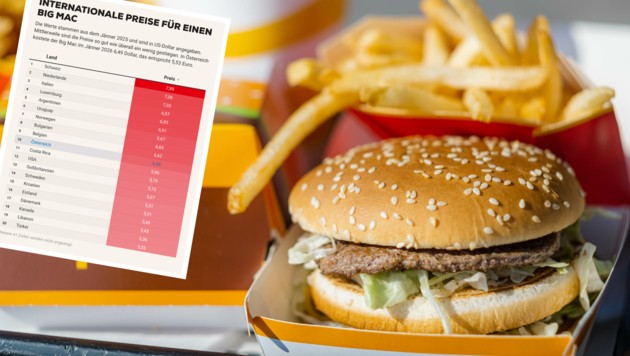 Glaubt man den Kommentaren in diversen Internet-Foren, so geht kaum noch ein Österreicher zu Mc Donald's. Das Geschäft dürfte trotzdem nicht so schlecht gehen, immerhin sind derzeit 205 Filialen geöffnet. Der Big Mac gehört zu den Lieblingsburgern der Österreicher. Krone+ hat sich angesehen, wie sich der Preis in den einzelnen Filialen entwickelt hat und wie er im internationalen Vergleich einzuordnen ist.