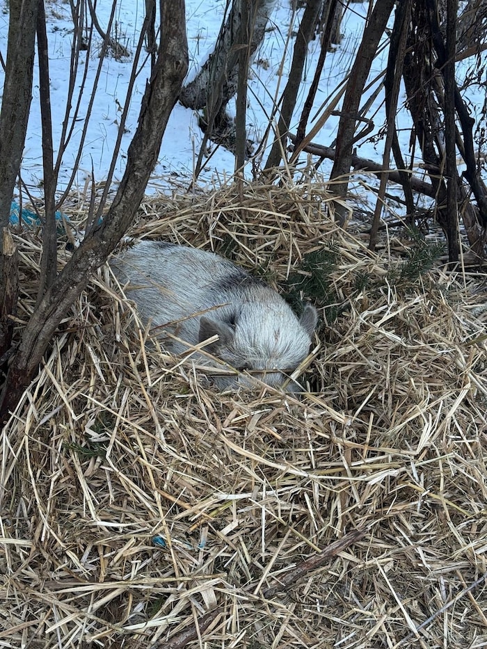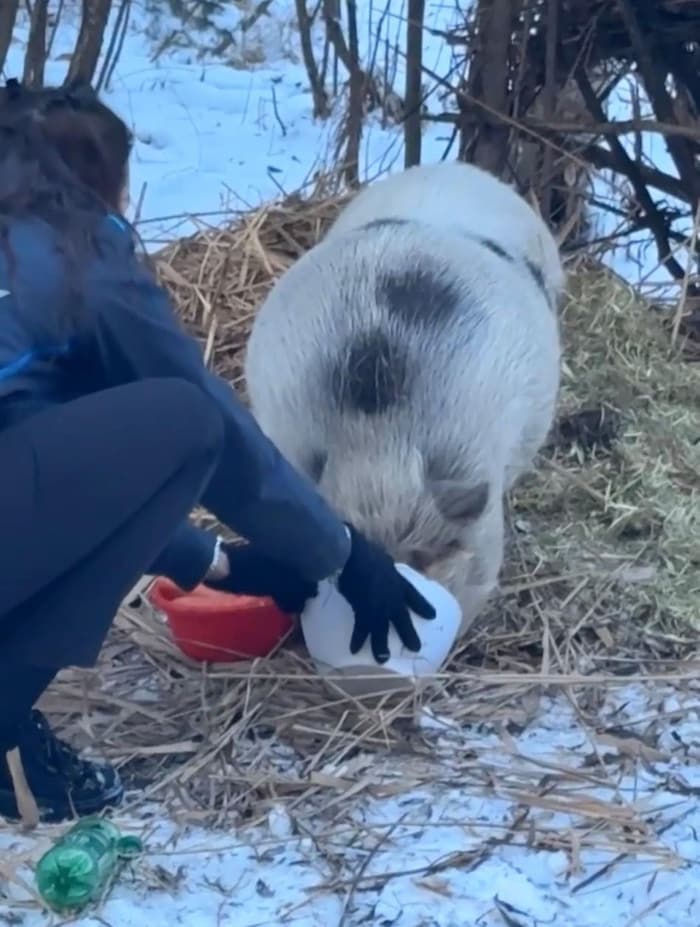Auch Nejez fand das Tier schließlich wieder. Die Temperaturen sanken im kalten Dezember freilich immer weiter. „Wir haben dem Schwein dann täglich lauwarmes Wasser und Futter gebracht. Es hat sich im Wald ein kleines Nest gebaut. Es wurde später sogar so zutraulich, dass es auf uns gewartet hat und uns aus der Hand gefressen hat“, schildert sie.