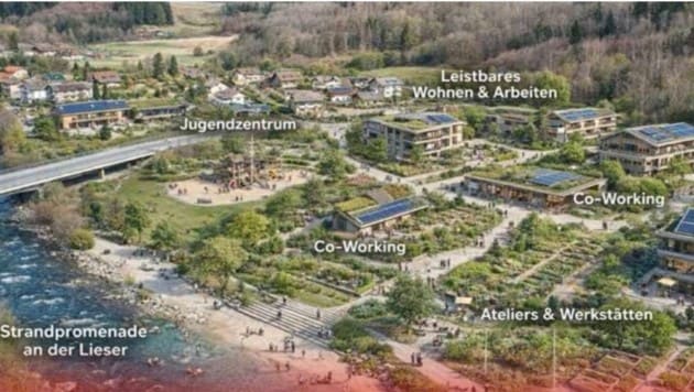 Darauf abgebildet: leistbare Wohnungen, Jugendzentrum, Platz zum Arbeiten, Ateliers, eine Strandpromenade. Für Faller ist das „bewusste Wählertäuschung auf tiefstem Niveau!“, wettert er in den sozialen Netzwerken. „All diese Projekte sollen in die Autobahnabfahrt, den Kreisverkehr, die Stadtzufahrt, das Fernwärmeheizwerk, das Lagerhaus, das Gewerbegebiet und der Einmündung eines Druckkraftwerks, das vom Land wohl bald genehmigt wird, eingebettet werden. Und das Ganze auf 1,3 Hektar. Viel Spaß beim Widmungsverfahren“, kommentiert Faller. „Präsentiert ohne Rücksicht auf die Besitzerfamilie der betroffenen Flächen? Das hat jetzt nichts mehr mit Wahlwerbung zu tun – das ist gezielte Manipulation und grenzt an Irreführung!“